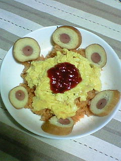 そうそう、写真は夕食のオムライスです。帰ったらいきなりこんなのが出てきました。